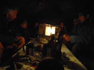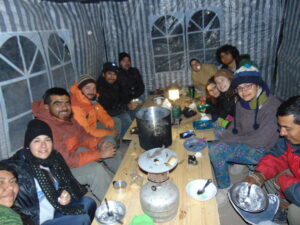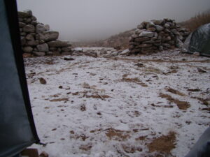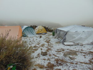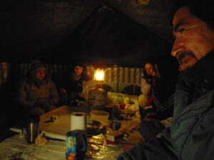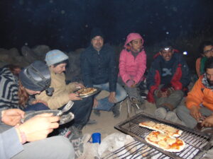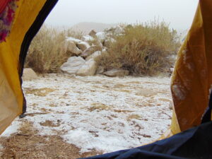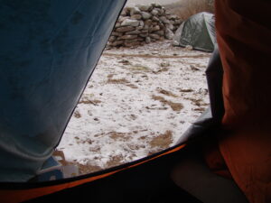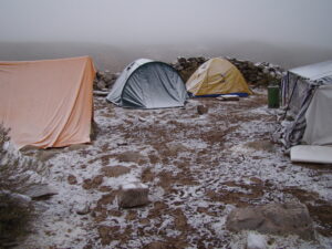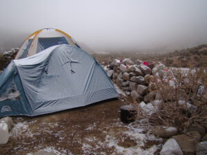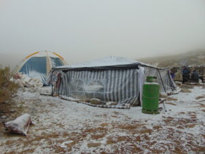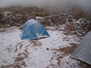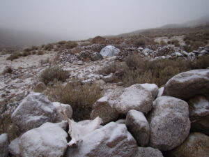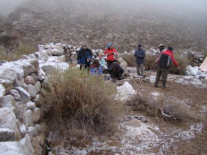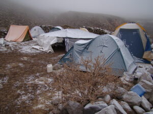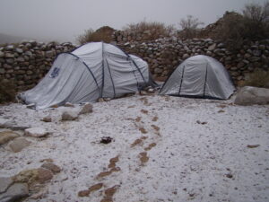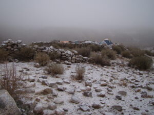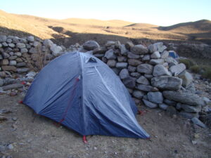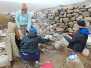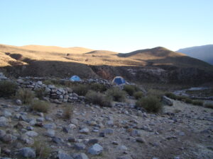 Para realizar los trabajos de campo, viajamos y nos instalamos en la Quebrada de Los Corrales que está a más de 3000 m sobre el nivel de mar. Dormimos en carpa y aunque sea en meses del otoño o primavera, de noche siempre hace mucho frío. Sin dudas la vida de campamento tiene un toque aventurero dentro de nuestro trabajo científico.
